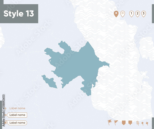 Azerbaijan - map with water, national borders and neighboring countries. Shape map.