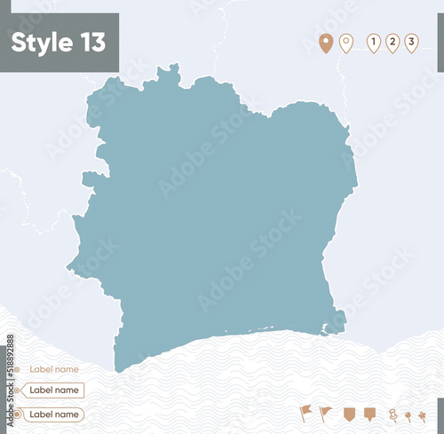 Cote D'ivoire - map with water, national borders and neighboring countries. Shape map.