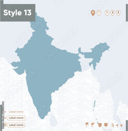Sri Lanka - map with water, national borders and neighboring countries. Shape map.