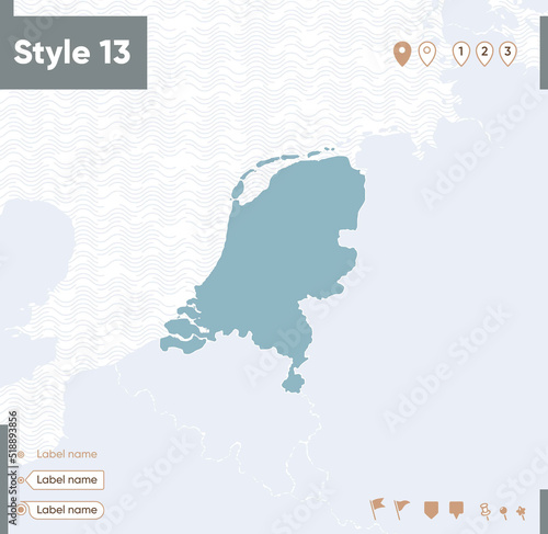 Netherlands - map with water, national borders and neighboring countries. Shape map.