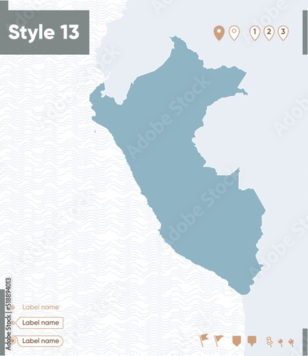 Peru - map with water, national borders and neighboring countries. Shape map.