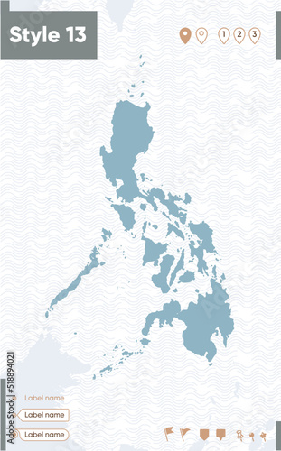 Philippines - map with water, national borders and neighboring countries. Shape map.