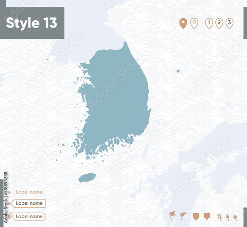 South Korea - map with water, national borders and neighboring countries. Shape map.