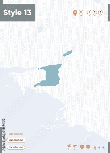 Trinidad And Tobago - map with water, national borders and neighboring countries. Shape map.