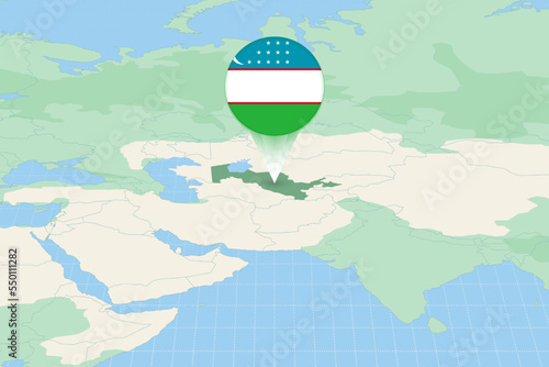 Map illustration of Uzbekistan with the flag. Cartographic illustration of Uzbekistan and neighboring countries.