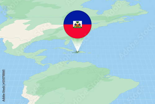 Map illustration of Haiti with the flag. Cartographic illustration of Haiti and neighboring countries.