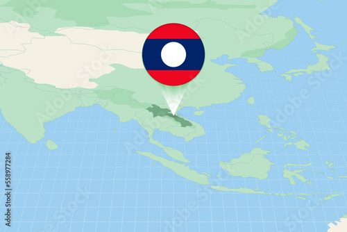 Map illustration of Laos with the flag. Cartographic illustration of Laos and neighboring countries.