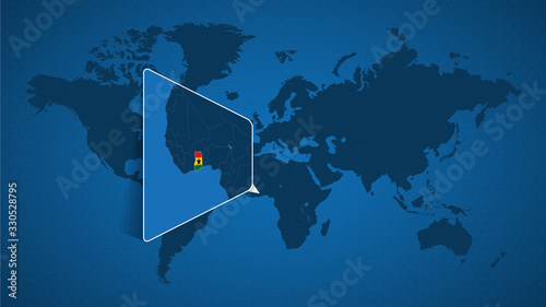 Detailed world map with pinned enlarged map of Ghana and neighboring countries.