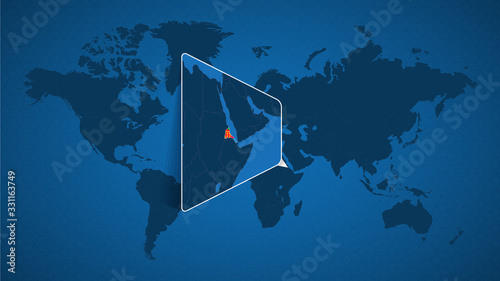 Detailed world map with pinned enlarged map of Eritrea and neighboring countries.