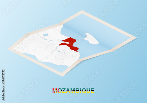 Folded paper map of Mozambique with neighboring countries in isometric style.