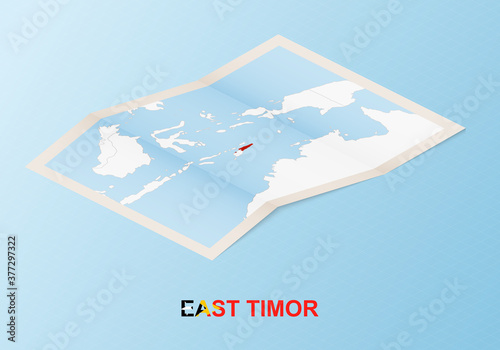 Folded paper map of East Timor with neighboring countries in isometric style.