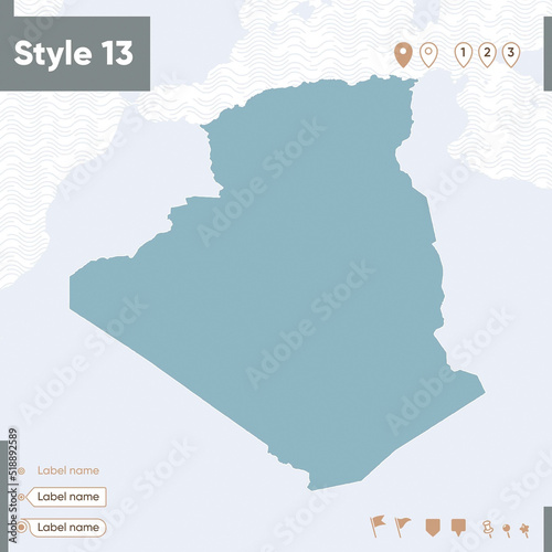 Algeria - map with water, national borders and neighboring countries. Shape map.