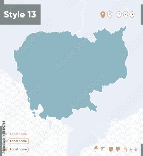 Cambodia - map with water, national borders and neighboring countries. Shape map.