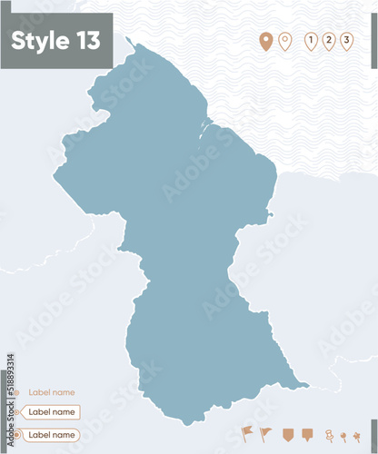 Guyana - map with water, national borders and neighboring countries. Shape map.