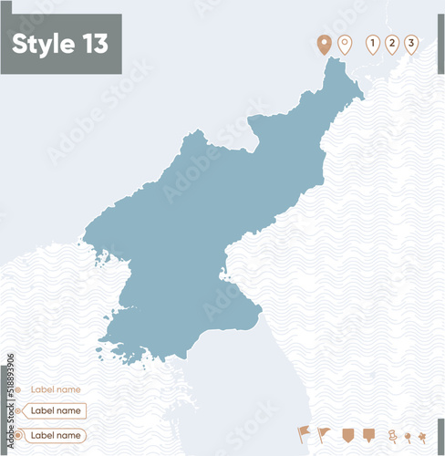 North Korea - map with water, national borders and neighboring countries. Shape map.
