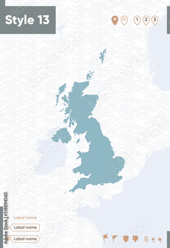 United Kingdom - map with water, national borders and neighboring countries. Shape map.