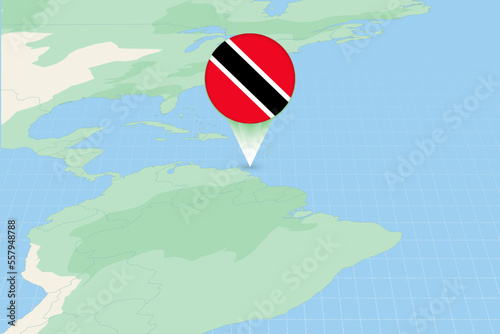 Map illustration of Trinidad and Tobago with the flag. Cartographic illustration of Trinidad and Tobago and neighboring countries.