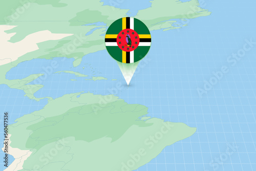Map illustration of Dominica with the flag. Cartographic illustration of Dominica and neighboring countries.