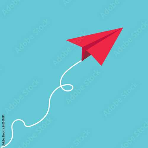Business concept. Red paper leader airplane flying on blue sky of business teamwork and one different vision. Leader, New idea, boss, manager, winner concept, trend. Vector illustration