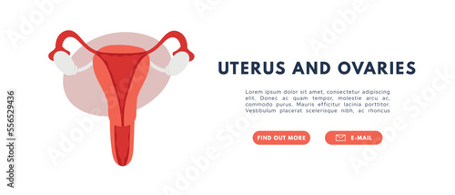 Uterus diagram of female reproductive system. Internal organ in outline style. Human anatomy infographics. Medical vector illustration.