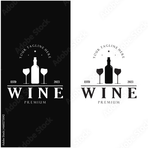 Wine icon. Wine bottle with glass vector illustration. Red wine symbol. Winery logo. Elegant alcohol drink sign. Vine bar pictogram. Chardonnay, rose, burgundy concept.
