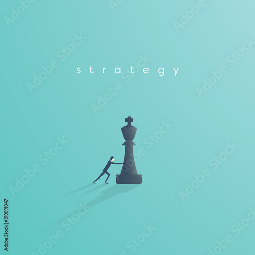 Business strategy vector concept with businessman playing chess. Symbol of vision, competition, negotiation, planning and challenge.