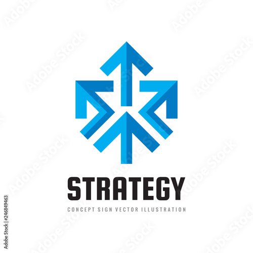 Business strategy vector logo template concept illustration. Three arrows creative sign. Progress development icon symbol. Geometric design element.