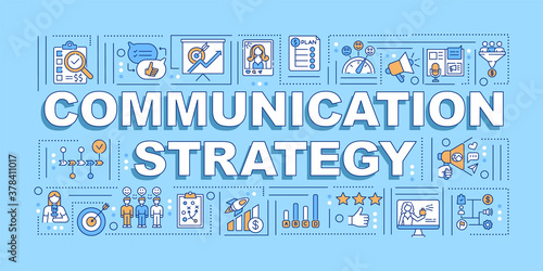 Communication strategy word concepts banner. Business management. Relationship. Infographics with linear icons on blue background. Isolated typography. Vector outline RGB color illustration