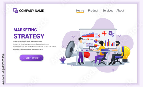 Marketing strategy concept with characters meeting or discussion. Can use for banner, business analysis, content strategy, mobile app, landing page, web design template. Flat vector illustration