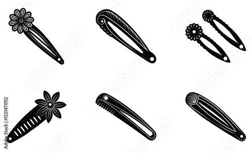 Three identical bobby pins vector illustration for hair styling and beauty applications scalable eps silhouette vector illustration white background