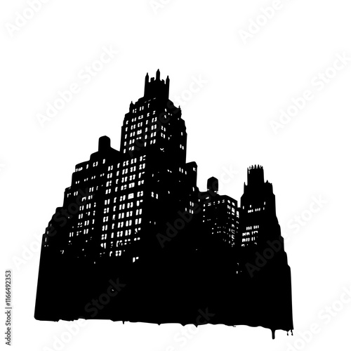 Vector illustration of black city silhouette with windows