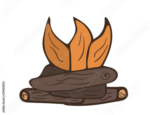 Vibrant cartoon illustration of a campfire with flames burning above wooden logs