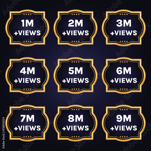 golden 1 million views to 8 million views celebration thumbnail vector set, 1m plus views badge