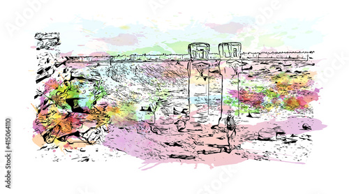 capital of Egypt. Watercolour splash with hand drawn sketch illustration in vector.