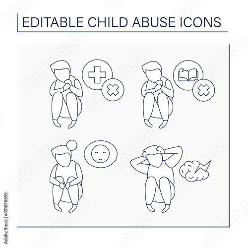 Sexual abuse line icon. Rape. Aggressive actions against young girl. Depression. Child abuse concept. Isolated vector illustration. Editable stroke