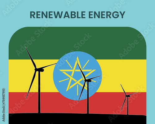 Wind energy / wind power vector illustration. Concept with connected icons related to wind power generation, renewable energy, wind park or wind farm.
