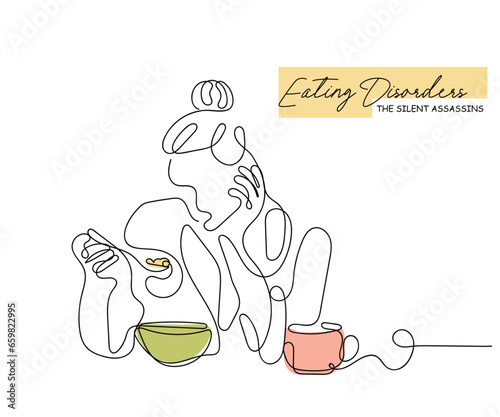 Line art vector of a people or person suffering from eating disorder. Girls mental health. Eating disorder awareness.