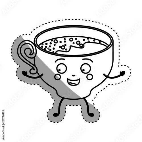 Cute cup of coffee with cream. Vector icon illustration. Sticker cartoon logo. Food  concept.  Flat cartoon style suitable for web landing page, banner, sticker, background. Kawaii cup of coffee.