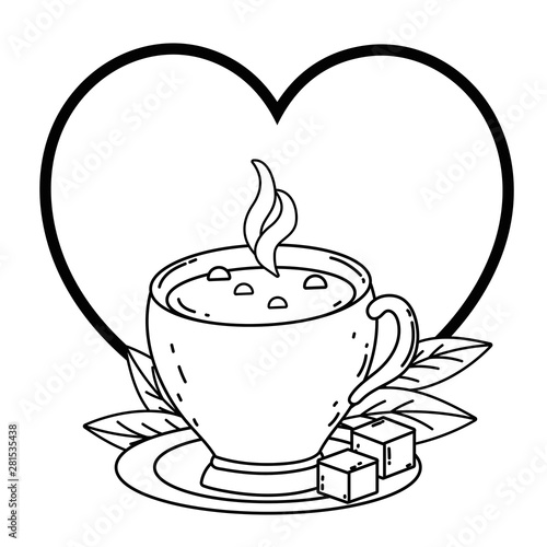 Steaming hot beverage cups in white outline and black silhouette for cafe and drink menus