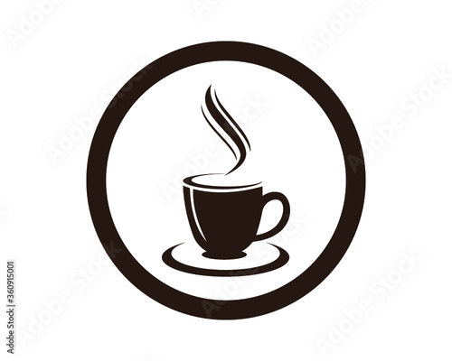 Coffee cup vector illustration with steam and coffee beans for cafe menu and coffee shop design concept