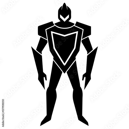 Guardian Deities and Demons mystical protectors in SVG and vector format.Angelic Knight with Wings and Swords in Bold Black Ink Style