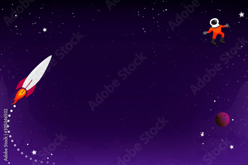 Vector gradient spacecraft in space flies. Cartoon colorful ship with mesh gradient effect. Launce of rocket in space. Blue fantasy craft in universe. Technology of future  concept. Cosmos flight.