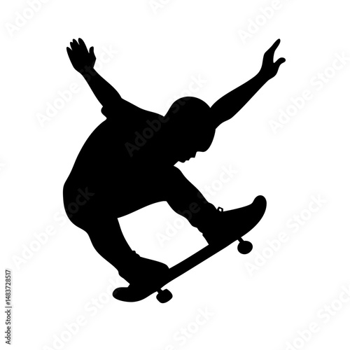 skateboarder silhouette, ollie trick sequence, extreme sport motion, urban street culture, skateboarding action frames, black shadow athlete, isolated white background