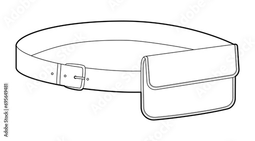 Belt Bag silhouette. Fashion accessory technical illustration. Vector satchel front 3-4 view for Men, women, unisex style, flat handbag CAD mockup sketch outline isolated