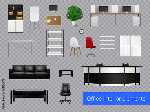 Modern cute beautiful office chair and armchair set with different poses and color isolated on white background