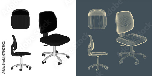 Vector modern Office chair ergonomic in various points of view. blue print isolated background