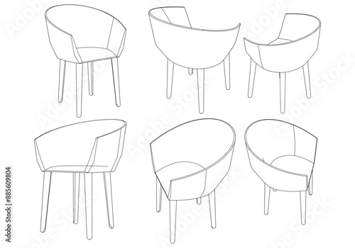 Plastic Chair Silhouette Set Design various positions and angles Vector Illustration. Modern black chair silhouette, plastic chair vector illustration