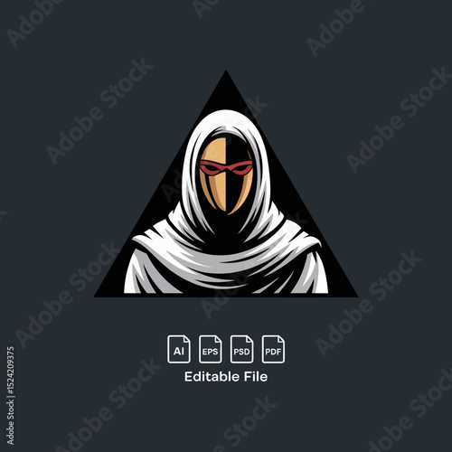 Dynamic esports logo featuring a mysterious character with glowing red eyes and a stealthy black hood