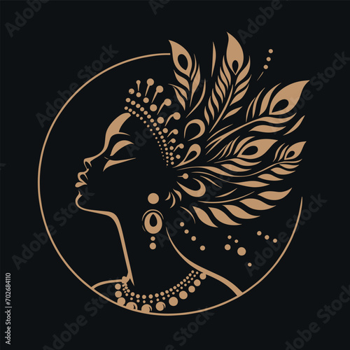 Celestial woman sacred astrology feminine boho esoteric golden and black black art. Moon, sun and star magic golden clipart vector.