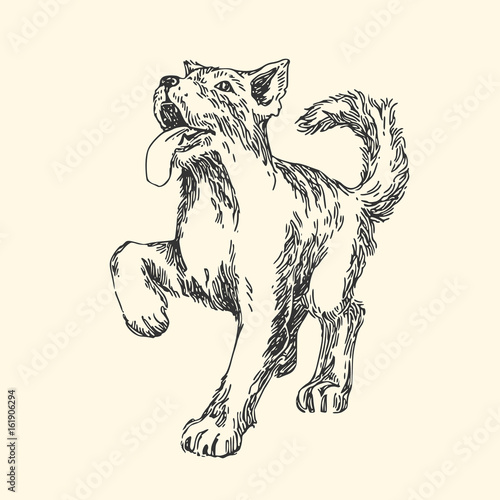 vintage animal engraving / drawing: dog - vector design element